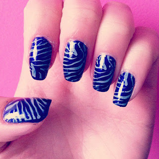 This has a very elegant and clean look towards it. I am a designer and therefore have very good visualisation. I knew these two colours would work perfectly together! I actually never thought I would've used this specific stamp pattern, but I am glad I did because this has become one of my favourite designs using the Konad Stamps!